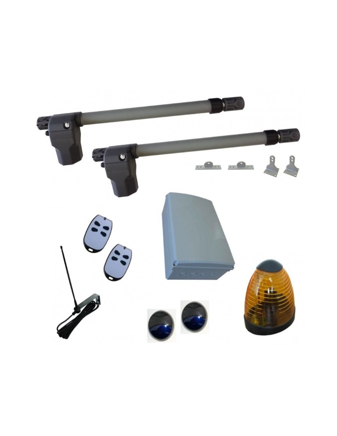 2 Operatori LB5: Ingranaggi in acciaio e bronzo, Stelo in acciaio INOX e telaio in alluminio verniciato a polvere, Sblocco con chiave di sicurezza, Attacchi anteriori e posteriori no-welding inclusi
