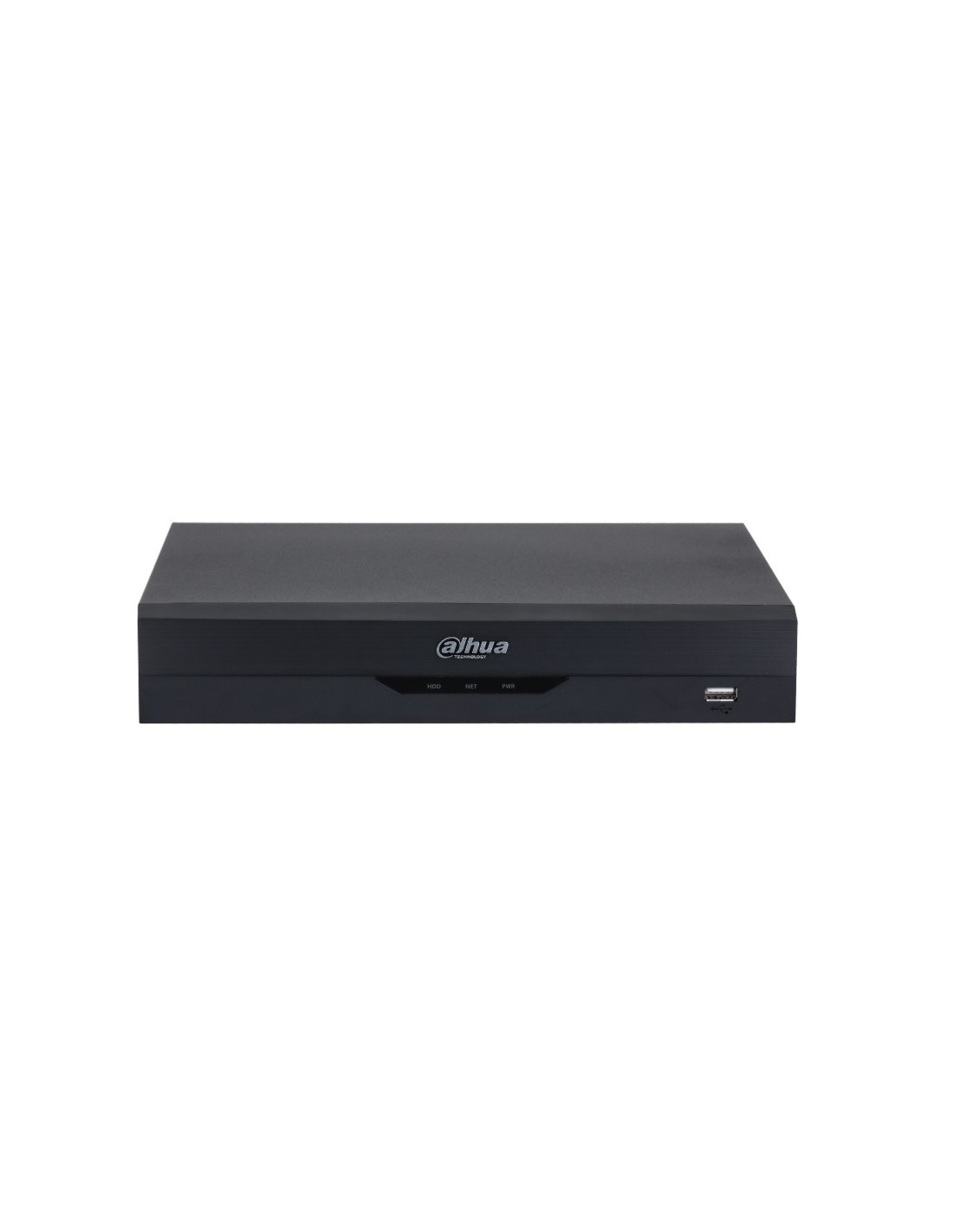 XVR AI WizSense 4 Kanäle HDCVI/CVBS/TVI/AHD oder 4+1 IP-Kanäle bei 2 MP, max. 32 Mbit/s Bandbreite, AI-Kodierung, H.265+, 2 Videoausgänge (1 VGA + 1 HDMI), 1 bidirektionaler Audioeingang und -ausgang, bereit für die Montage von 1 SATA-Festplatte (bis zu 16 TB), 1 RS485-Anschluss, 1 100 Mbit/s LAN-Anschluss, 2 USB 2.0-Anschlüsse, AI-Suche, 4 analoge SMD Plus-Kanäle, kompakte 1U, 12-V-DC-Stromversorgung <4 W ohne Festplatte
