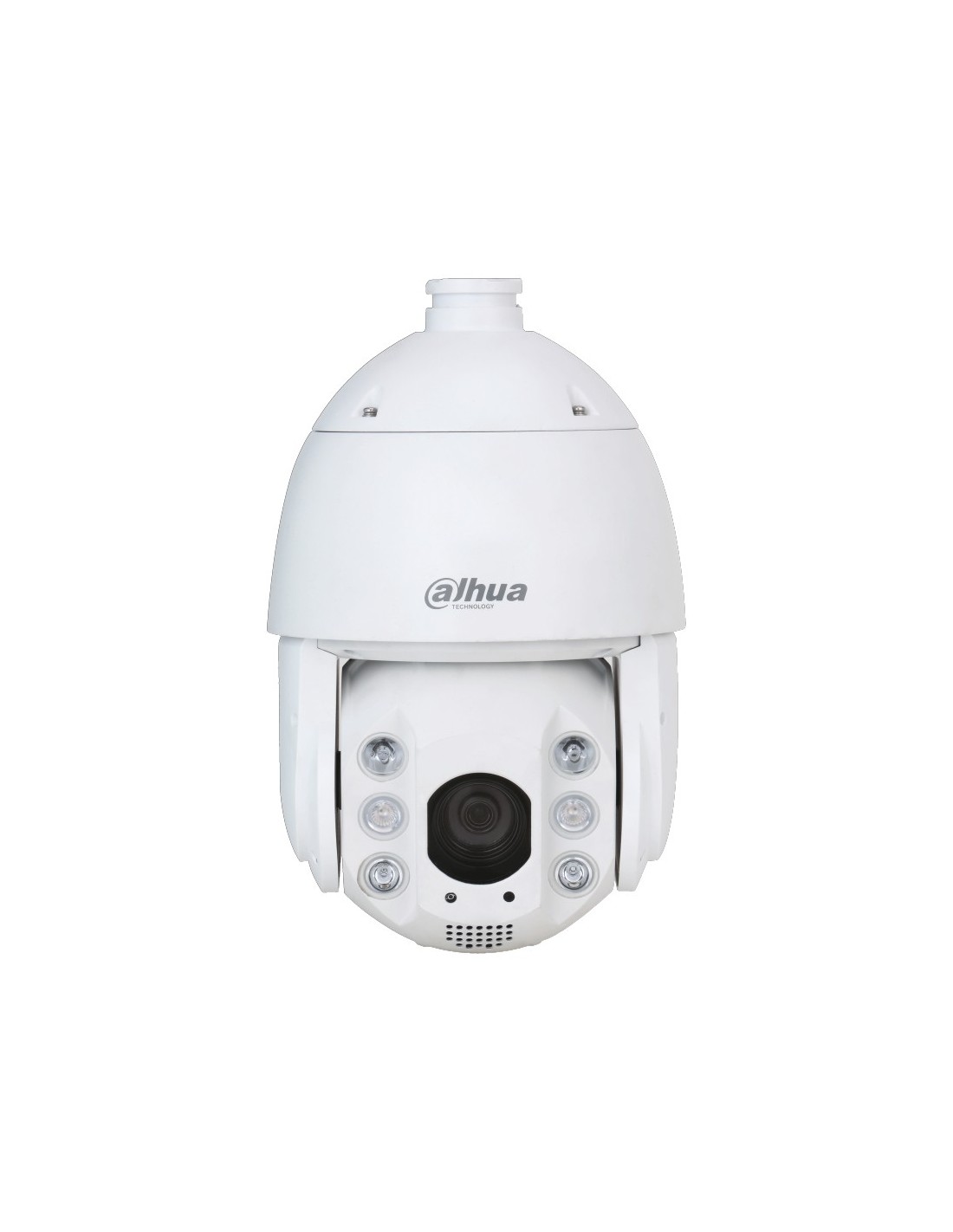 Speed dome IP AI WizSense Full-color 6" para interior/exterior IP66, sensor CMOS Starvis progresivo 1/2.8", resolución 4 MP a 50/60fps, rotación PAN 360° sin fin / TILT -20°~90°, auto flip 180°, H.265+, ICR, zoom óptico 25x (4.8~120 mm F1.6~3.6) / 16x digital, luminosidad 0.005 lux F1.6, alcance IR 150 m, alcance LED 50 m, 1 puerto LAN 100 Mbps, 2 entradas y 1 salida de alarma, 1 entrada y 1 salida de audio, 5 escaneos, 8 tours y 5 patrones, 2/3DNR, WDR 120 dB, máscara de privacidad 24 áreas, metadatos de video, IVS (protección perimetral), SMD, detección de rostros, auto seguimiento, PFA, tarjeta micro SD (256 GB), alimentación 24 Vdc/PoE+ <23 W