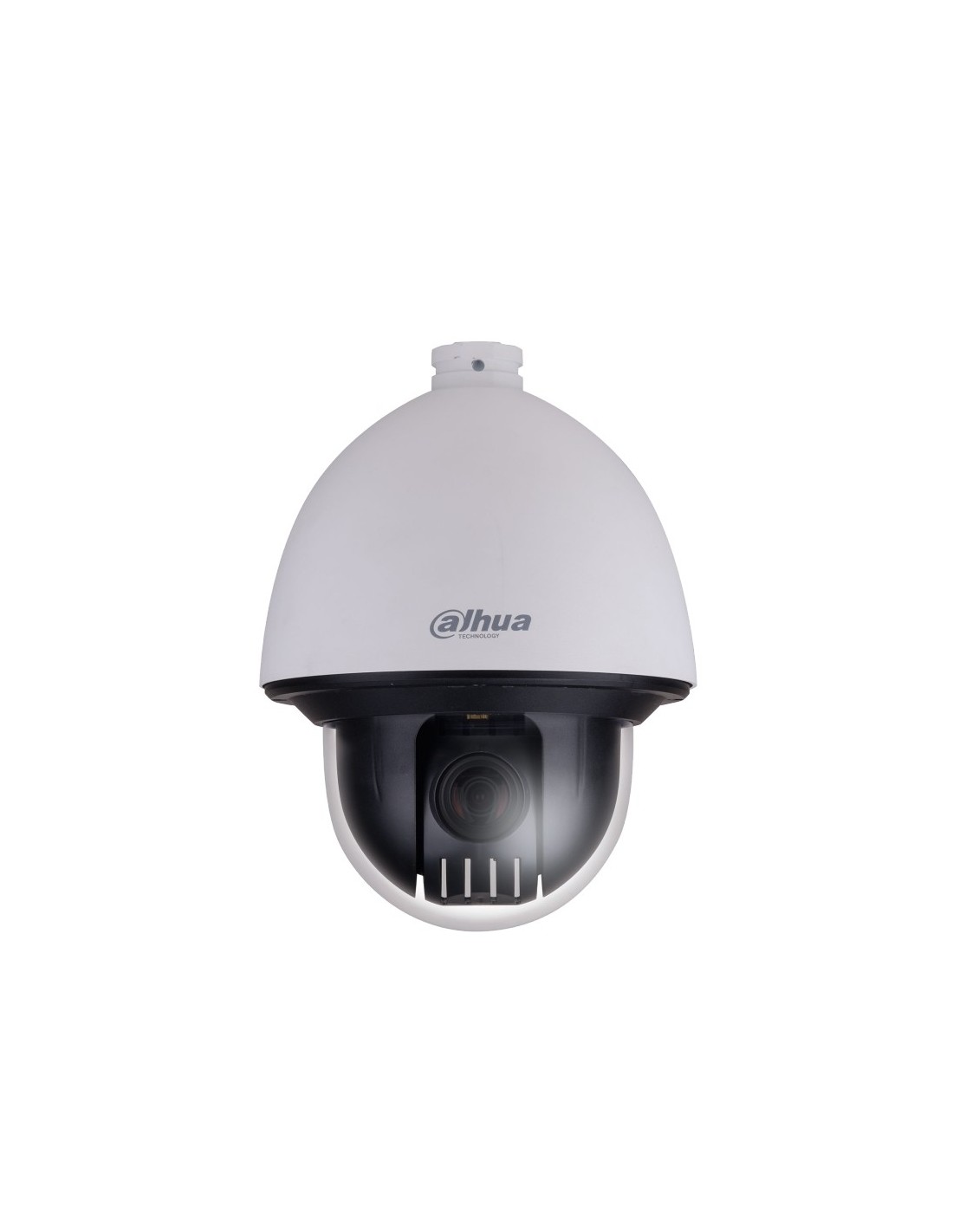 Speed dome IP 6" para interior/exterior IP67 antivandálico IK10 con calefacción, sensor CMOS progresivo 1/3", resolución 4 MP a 25/30fps, rotación PAN 360° sin fin / TILT -20°~90°, auto flip 180°, H.265+, ICR, zoom óptico 30x (4.5~135 mm ƒ1.6~4.4) / 16x digital, luminosidad 0.05 lux ƒ1.6, 1 puerto LAN 100 Mbps, 7 entradas y 2 salidas de alarma, 1 entrada y 1 salida de audio, 1 puerto RS485, protocolos Pelco P/D y Dahua de 300 presets, 5 escaneos, 8 tours y 5 patrones, WDR 120 dB, máscara de privacidad 24 áreas, auto seguimiento, IVS, detección facial, mapa de calor, tarjeta micro SD (256 GB), alimentación 24 Vac/PoE+ <20 W, adaptador de fijación PFA111 y fuente de alimentación incluidos