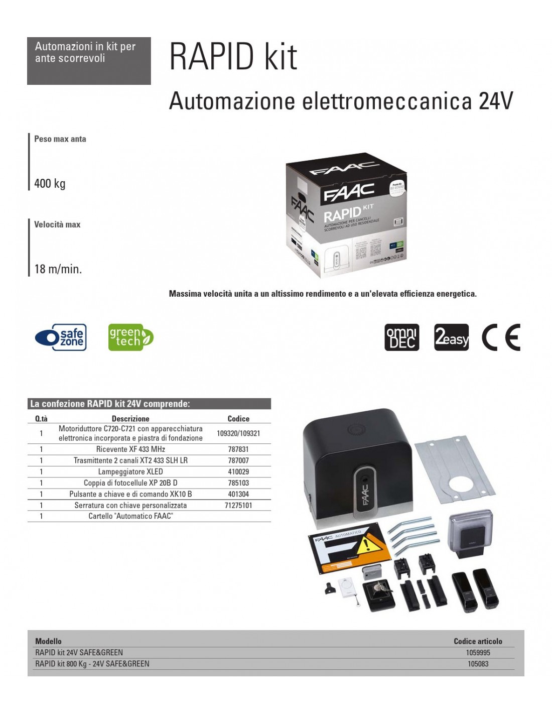 Motorreductor FAAC C720 24V para puertas correderas de hasta 400 Kg de peso, extremadamente compacto y robusto,