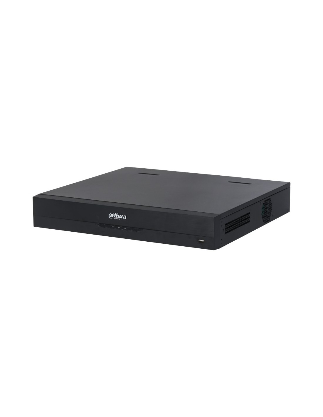 XVR AI WizSense 32 canales HDCVI/CVBS/TVI/AHD a 5 MP o 32 canales IP a 8 MP, máx. banda 128 Mbps, codificación AI, H.265+, 4 salidas de video (1 VGA + 2 HDMI + 1 TV), 16 entradas y 6 salidas de alarma, 4 entradas y 1 salida de audio BNC bidireccional, preparado para montaje de 4 discos SATA (hasta 10 TB cada uno), 1 puerto eSATA, 2 puertos LAN 1000 Mbps, 1 puerto RS485, 1 puerto RS232, 3 puertos USB (2.0 y 2 3.0), 2 canales analógicos de protección perimetral, 2 canales analógicos de reconocimiento facial, 16 canales analógicos SMD Plus, 1.5U, alimentación 100~240 Vac <22 W sin Disco Duro