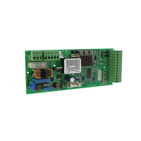 Fonctions programmables : logique de fonctionnement, temps de pause, force de poussée, sens d'ouverture/fermeture, couple de démarrage, freinage, sécurité intégrée, pré-lumière, lampe d'avertissement, sortie temporisée, verrouillage électrique en ouverture/fermeture, logique de sécurité en ouverture et fermeture, encodeur, sensibilité anti-écrasement, ralentissement, temps d'ouverture partielle, temps de travail, demande d'intervention, compteur de cycles.