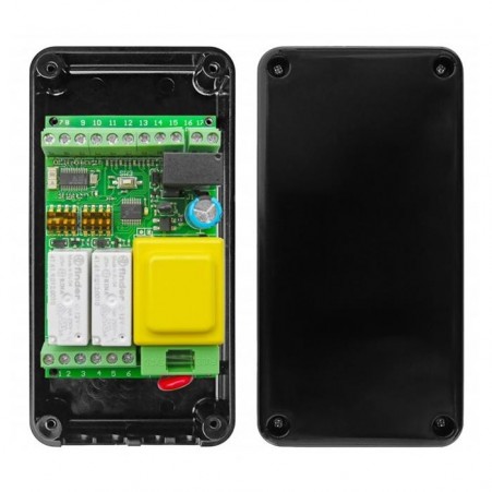 Unité de commande électronique très pratique pour allumer ou éteindre ou programmer des commandes via des boutons ou jusqu'à 3 commandes radio. La fonction crépusculaire peut être activée par l'apprentissage du seuil de luminosité (si le capteur est connecté) sur la sortie LIGHT1, la temporisation sur LIGHT1 et LIGHT2, pas à pas sur les trois.